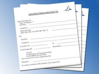 Den Seemeilenvordruck können Sie vom Skipper ausfüllen und unterschreiben lassen. Bei unseren Törns haben die Skipper die Vordrucke bereits an Bord.